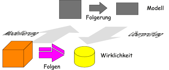 Es ist also immer zu testen, ob Erfahrungseindrücke und Assoziatonen, die mit der Modellbildung verbunden sind, den Modellannahmen widersprechen, oder ihnen gerecht werden.