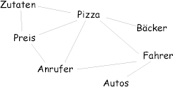 Die Miniwelt eines Pizzaservice besteht unter anderem aus folgenden Elementen: