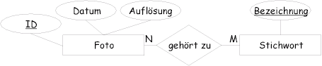 Die Digitalfotos erhalten am einfachsten ebenfalls Nummern als Primärschlüssel,