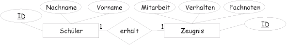 - Zeugnis{ID, Mitarbeit, Verhalten, Fachnoten}