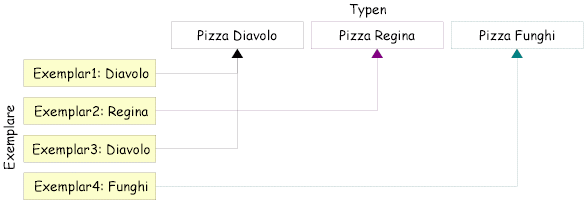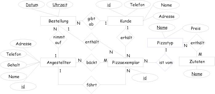 Hier steht die Entität "Pizza" sowohl für die Pizzatypen, wie auch die einzelnen