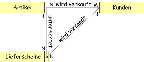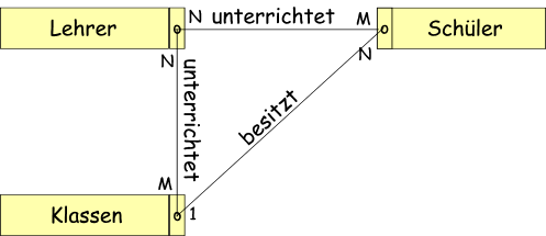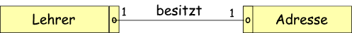 Im ersten Fall haben wir eine 1:1 Beziehung; die läßt sich in einer Tabelle auflösen.