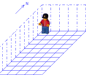 mit fester Länge, Breite und Höhe. Karol kann in dieser Welt einiges bewirken: er kann herumlaufen, sich drehen, Steine schleppen oder Marken setzen.