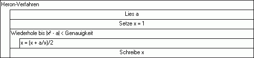 - Berechnung der Wurzel einer Zahl nach dem Heron-Verfahren: