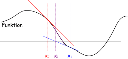 Berechnung der Nullstelle einer Funktion nach dem Newton-Verfahren: