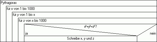 - Schreiben Sie ein Programm/Struktogramm, das den letzten Satz von Fermat für x, y, z < 1000 und