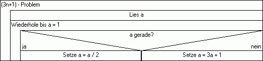 Ein Beispiel für eine seltsame Iteration ist das (3n+1)-Problem. Dieses Problem stammt vom deutschen Mathematiker Lothar Collatz (1910 - 1990), das er sich noch zu seiner Studienzeit gestellt hat. Es ist bis heute nicht gelöst. Die Aufgabe an sich ist einfach und behandelt eine Folge natürlicher Zahlen: