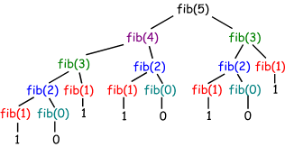 Hier kommt noch erschwerend hinzu, dass Unterprogramme zur Berechnung einer bestimmten Fibonaccizahl mehrfach im Speicher vorhanden sind. Die Berechnung von Fibonaccizahlen ist also auf diese Weise nicht sehr effizient.