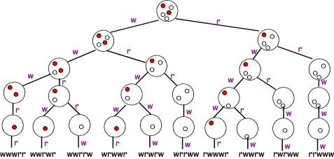 Dabei stellt man sich vor, dass sich mehrere Kugeln verschiedener Farben in einer "Urne" befinden. Welche Kombinationen sind möglich, wenn die Kugeln nacheinander ohne zurücklegen gezogen werden? Dabei lassen sich dann "Bäume" zeichnen, die die jeweiligen Züge nacheinander erfassen.