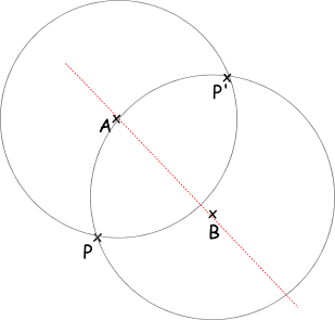 der entstandene Schnittpunkt der Kreise legt P' fest
