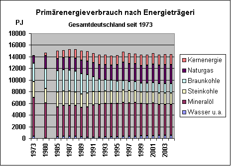 Primärenergieverbrauch nach Energieträgern 1973 - 2004 |