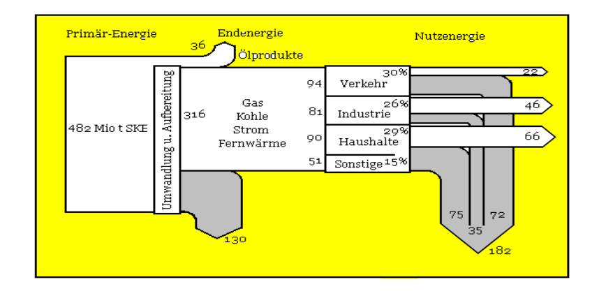 | Wohin geht die Energie? Verkehr, Haushalte, Handel, Militär, Abwärme? Nichtenergetische Umwandlungen (Chemie)! | ||||||||||||||||