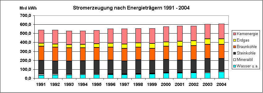 | Physik-Seminar | Stromerzeugung nach Energieträgern 1991 - 2004 | Tab 18 | |||||||||||||||