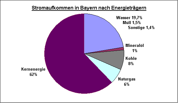 Stromaufkommen in Bayern 2002 nach Energieträgern |