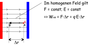 Arbeit längs Feldlinie im hom. Feld