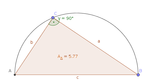 a = b; es ergibt sich also ein gleichschenklig-rechtwinkliges Dreieck. Die symmetrische Lösung ist also die mit dem maximalen Flächeninhalt. |