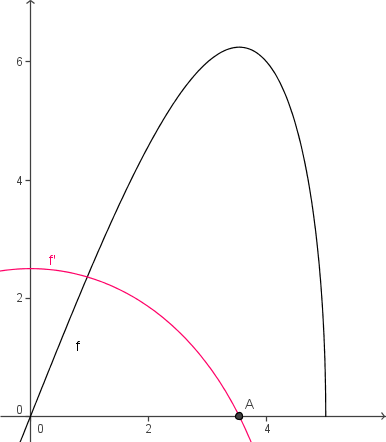 `f'(x) = (25 - 2·x^2)/(2·sqrt(25 - x^2))` `f'(x) = 0 = (25 - 2·x^2)/(2·sqrt(25 - x^2))` `=> 25 - 2x^2 = 0 => x_(1/2)=+-(5*sqrt 2)/2` negative Lösung ist nicht definiert `x = (5 sqrt2)/2 ~~ 3.54` Extremwert gegebene Hypothenuse, Funktion