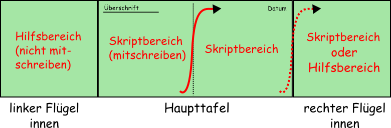 - Die Einteilung sollte so gestaltet sein, dass Tafelwischen zwischendurch nicht notwendig ist.