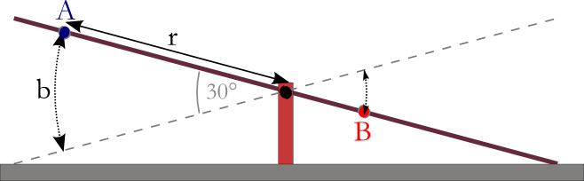 Anja (A) und Babsi (B) sitzen auf einer Kinderwippe. Die Wippenstange kann sich um 30° drehen.