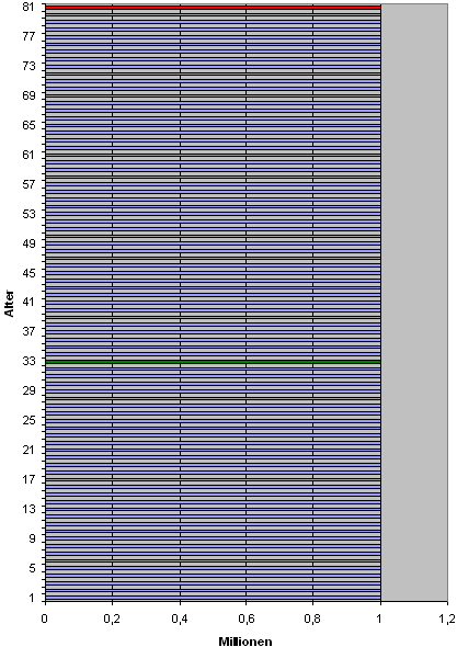 • Es existieren zum Startzeitpunkt genau 81 Millionen Deutsche, in jedem Alter genau 1 Million