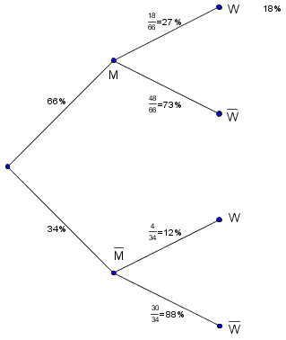 $P(M) \cdot P(W) = 0,1452 \ne 0,18 = P(M \cap W)$