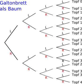 - An jeder Stecknadel ist mit einer Wahrscheinlichkeit von 50% ein Fall nach links und mit 50% ein Fall nach rechts möglich
