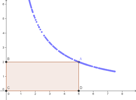• und die Wertepaare im Koordinatensystem alle auf einer Hyperbel liegen.