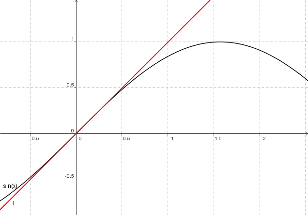 | Tangentensteigung von sin(x) im Nullpunkt |