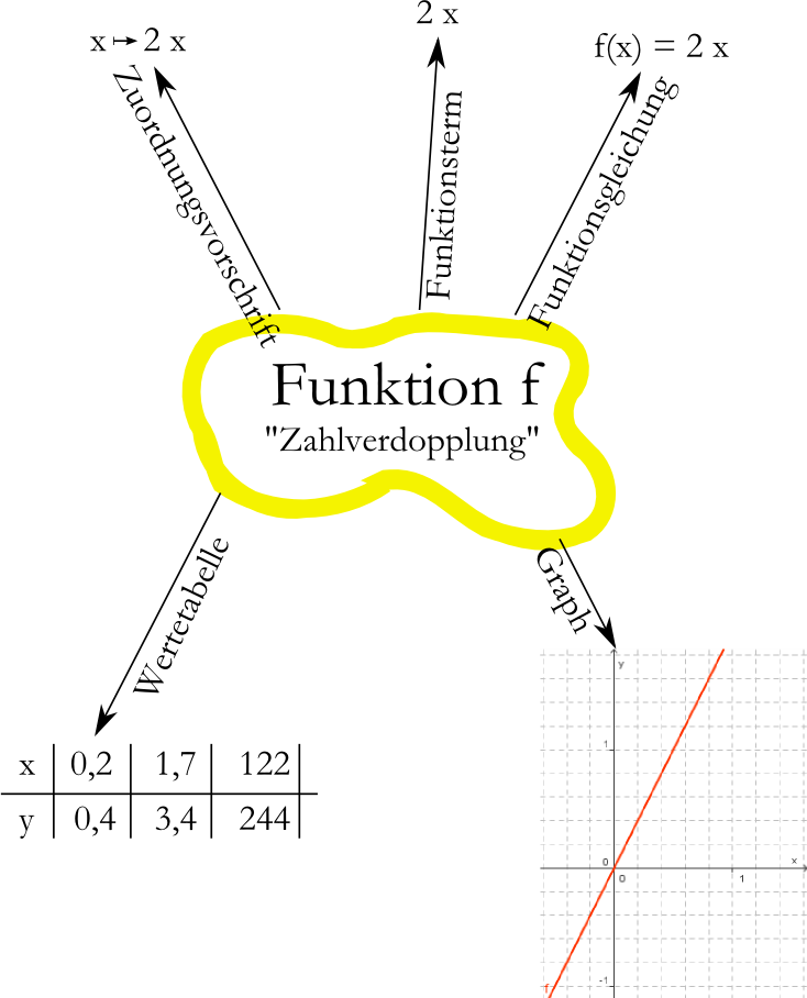 Eine Zuordnung von einer Größe auf eine andere Größe heißt Funktion, wenn sie eindeutig ist, d.h. jedem x aus dem Definitionsbereich ist genau ein y aus dem Wertebereich zugeordnet.