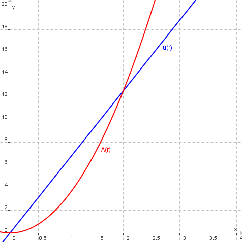 Graph der Funktionen für Umfang und Radius eines Kreises