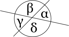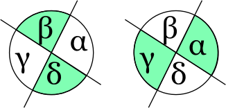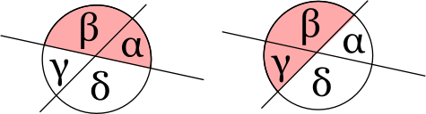 Abgeleiterter Satz: Scheitelwinkel sind gleich groß. |