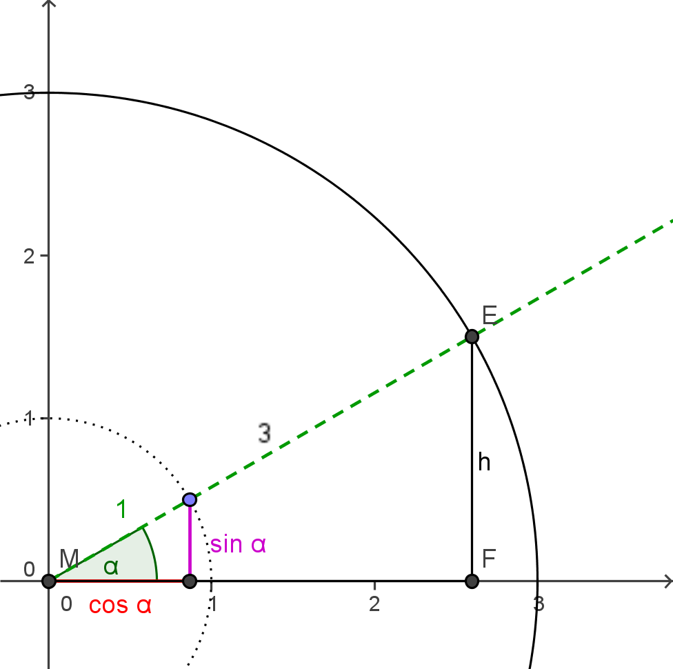 `(sin alpha)/1 = h/3` oder allgemein: