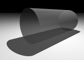 cylinder{ <-2,0,-4>, <3,0,3>, 2 pigment { color rgbt <1,1,1,0.5> }}
