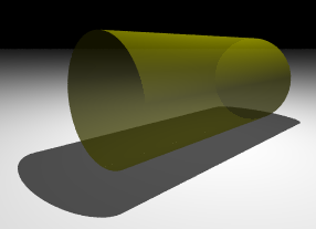 cylinder{ <-2,0,-4>, <3,0,3>, 2 pigment { color rgbt <1,1,0,0.5> }}