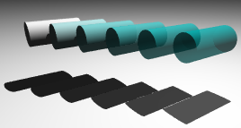 | Viele Zylinder mit unterschiedlichem Blauanteil |