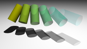 | Viele Zylinder mit unterschiedlichem Rotanteil und unterschiedlicher Transparenz |
