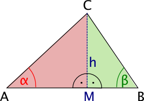 - Betrachte die entstandenen Teildreiecke `Delta AMC` und `Delta BMC`