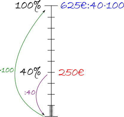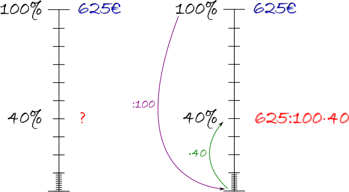 Multipliziere mit 40 um auf 40 Prozent zu kommen Prozentwertberechnung