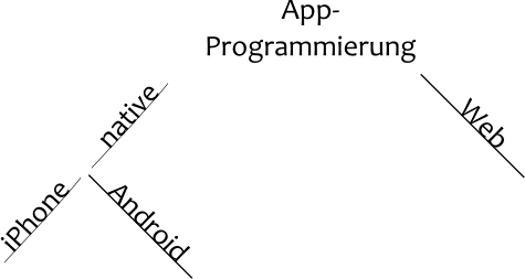 Vorteil: Die App muss nur einmal programmiert werden, die Programmierung ist einfach und benutzt allgemeine Techniken der Web-Programmierung.