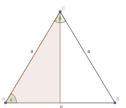 Das gleichschenklige Dreieck mit der Basislänge b und der Schenkellänge a zerfällt durch die Basishöhe h in zwei kongruente rechtwinklige Dreiecke.