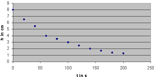 Ein Glas Bier wird eingeschenkt und die Höhe des Bierschaums wird alle 20s gemessen: