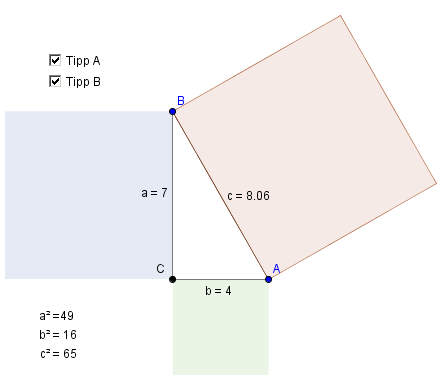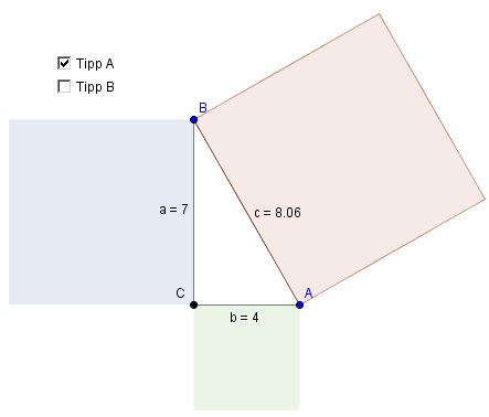 - Als Tipp können die Quadrate über den Seiten des rechtwinkligen Dreiecks dazugeschaltet werden