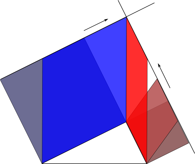 Die braunen Dreiecke werden mit nun so neu zusammengelegt, dass ebenfalls ein Quadrat der Seitenlänge a+b entsteht: