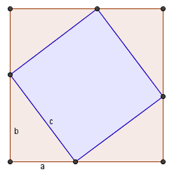 Gesamtfläche ist Fläche der 4 rechtwinkligen Dreiecke zusammen mit der inneren Quadratfläche: