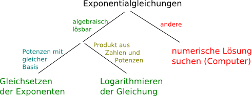 Je nach Art der Exponentialgleichung unterscheidet man den Lösungsweg: