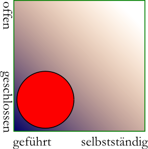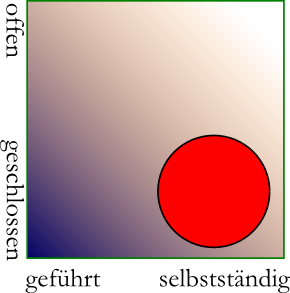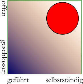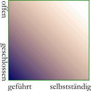 Das folgende Schema stellt eine Möglichkeit dar, sich zu überlegen wie man Unterricht mit Aufgaben gestalten möchte. Dazu werden zwei Dimensionen unterschieden: