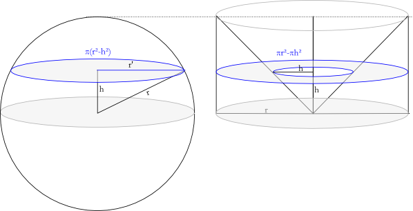 | Kugelvolumen mit Hilfe des Vergleichskörpers |